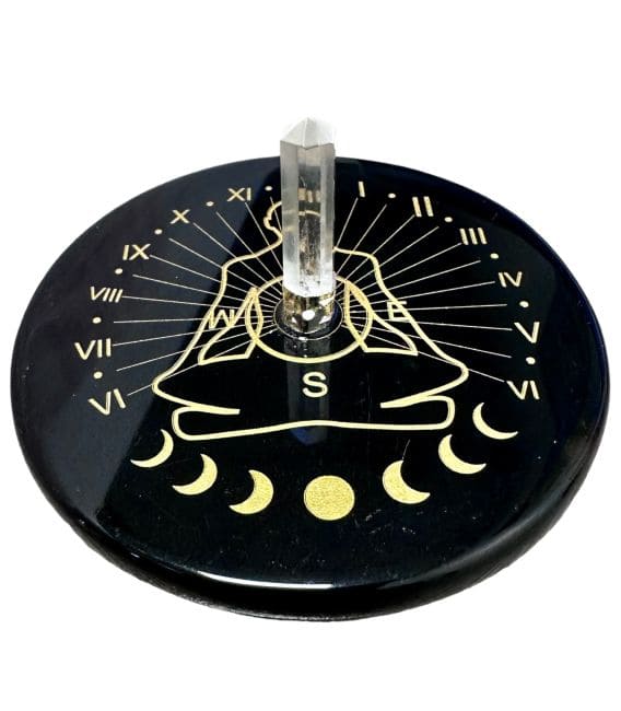 Kiedy płyta jest wystawiona na bezpośrednie działanie promieni słonecznych, pryzmat z kryształu górskiego załamuje światło, tworząc efekty świetlne i kolorowe widma. Te efekty wizualne można wykorzystać do medytacji, wróżenia lub do przyciągania i kierowania pozytywnej energii