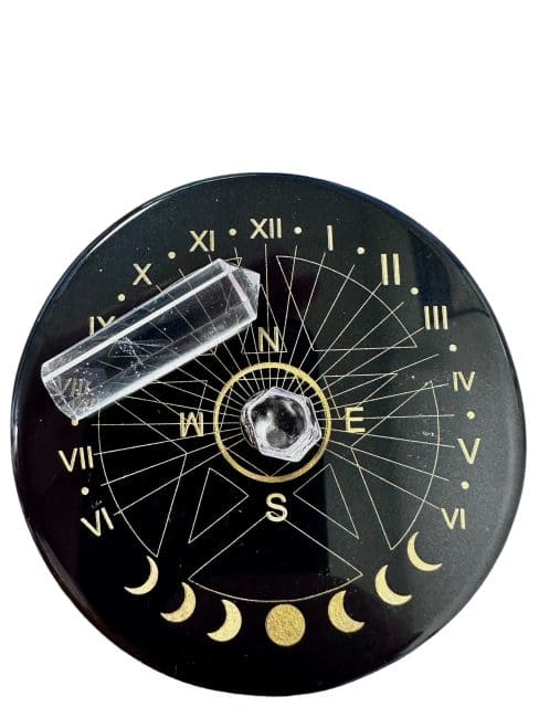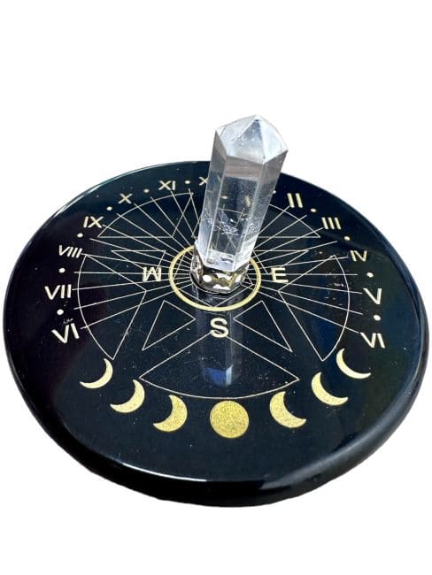 Tablica do wróżenia z pentagramem z czarnego onyksu z kryształem górskim 8cm